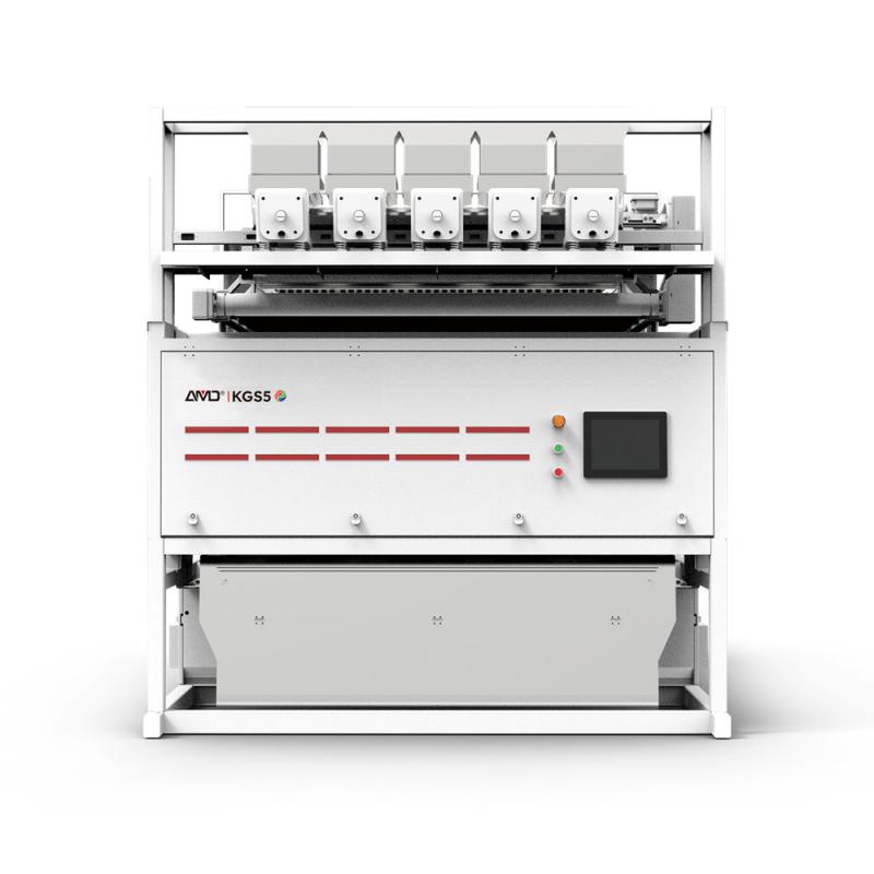 AMD® KGS5 (KP) cam ayırıcı, gelişmiş yapay zeka optik tanıma teknolojisini kullanarak, çoklu optik yol algılama ve derin öğrenme algoritmaları aracılığıyla camı renk ve şekle göre ayırır ve böylece doğru safsızlık giderme ve istikrarlı yüksek saflıkta çıktı sağlar.